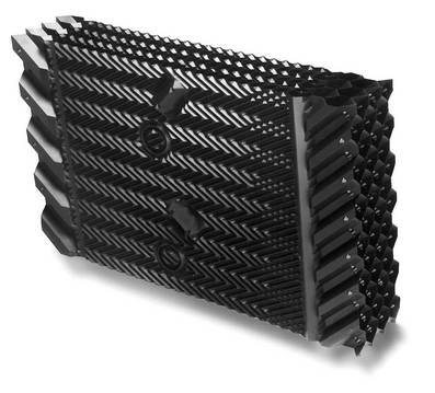 填料是冷却塔最重要的部分,它的效率高低,取决于冷却水与空气在填料中充分接触的程度。本公司的填料耐温-20℃~50℃,耐老化、性能优良、抗紫外线,寿命长。其优点如下: