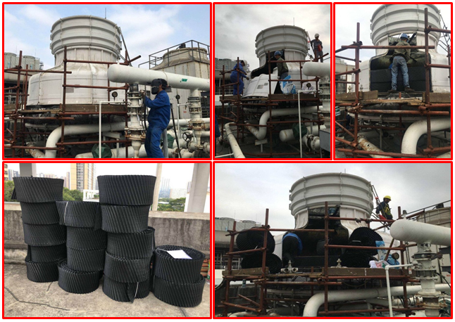 鸿翔花园位于深圳老城区之一的罗湖蔡屋围区松园路。由于冷却塔使用寿命长,冷却塔填料老化,需要更换冷却塔填料。接下来,根据鸿详花园圆形冷却塔填料的更换,介绍了拆卸和更换圆形冷却塔填料的正确过程。 在清除